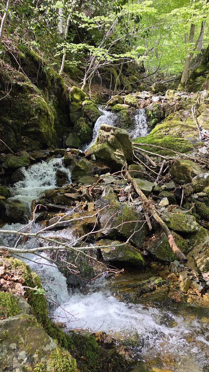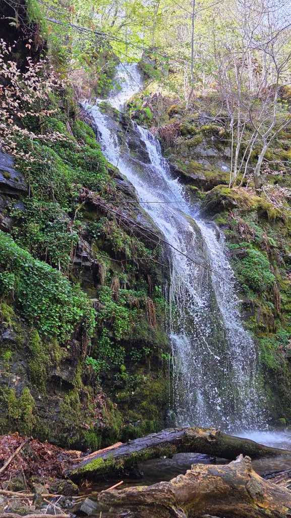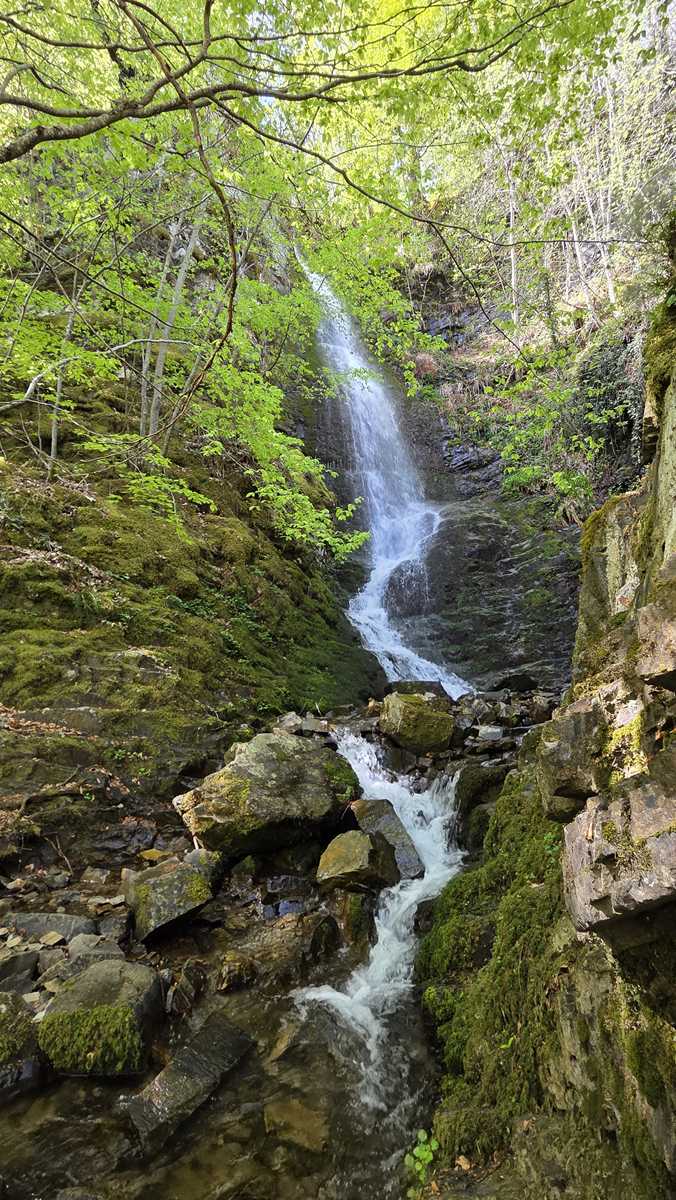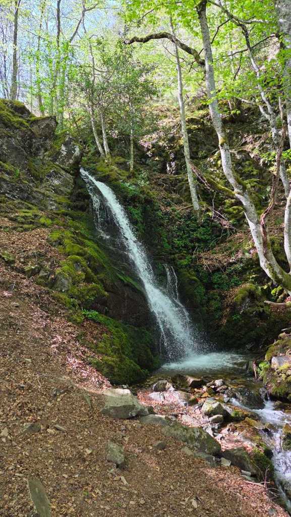 Poco después llega la segunda cascada, el Salto Medio, aún más impresionante, con unos 30 metros de caída. Y tras seguir ascendiendo por el hayedo, alcanzamos la tercera y última, el Salto Doble, una cascada espectacular dividida en dos saltos con una poza intermedia, situada en un pequeño circo rocoso que parecía sacado de otro lugar. El conjunto es sencillamente majestuoso.