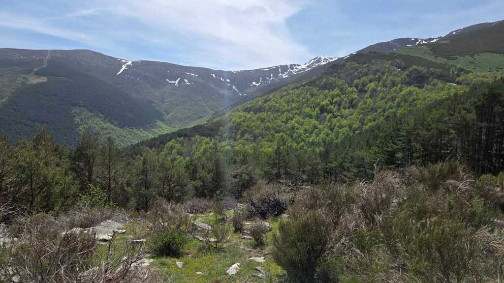 Continuamos hacia la Majada de la Garrula, donde encontramos una pequeña cabaña de pastores, y posteriormente atravesamos otro pinar que nos llevó hasta la Majada de los Carneros, otro testimonio del pasado ganadero de la zona. Estas majadas, utilizadas tradicionalmente como zonas de pastoreo en verano, formaban parte de las rutas de trashumancia de ganaderos que llevaban sus ovejas merinas a estos puertos de montaña.