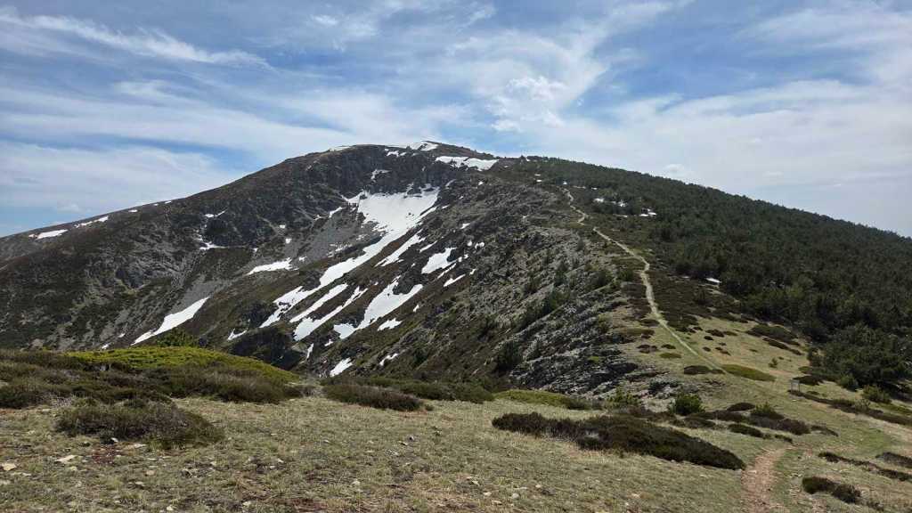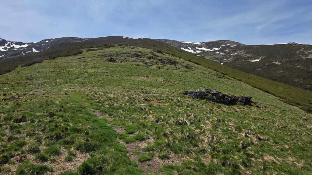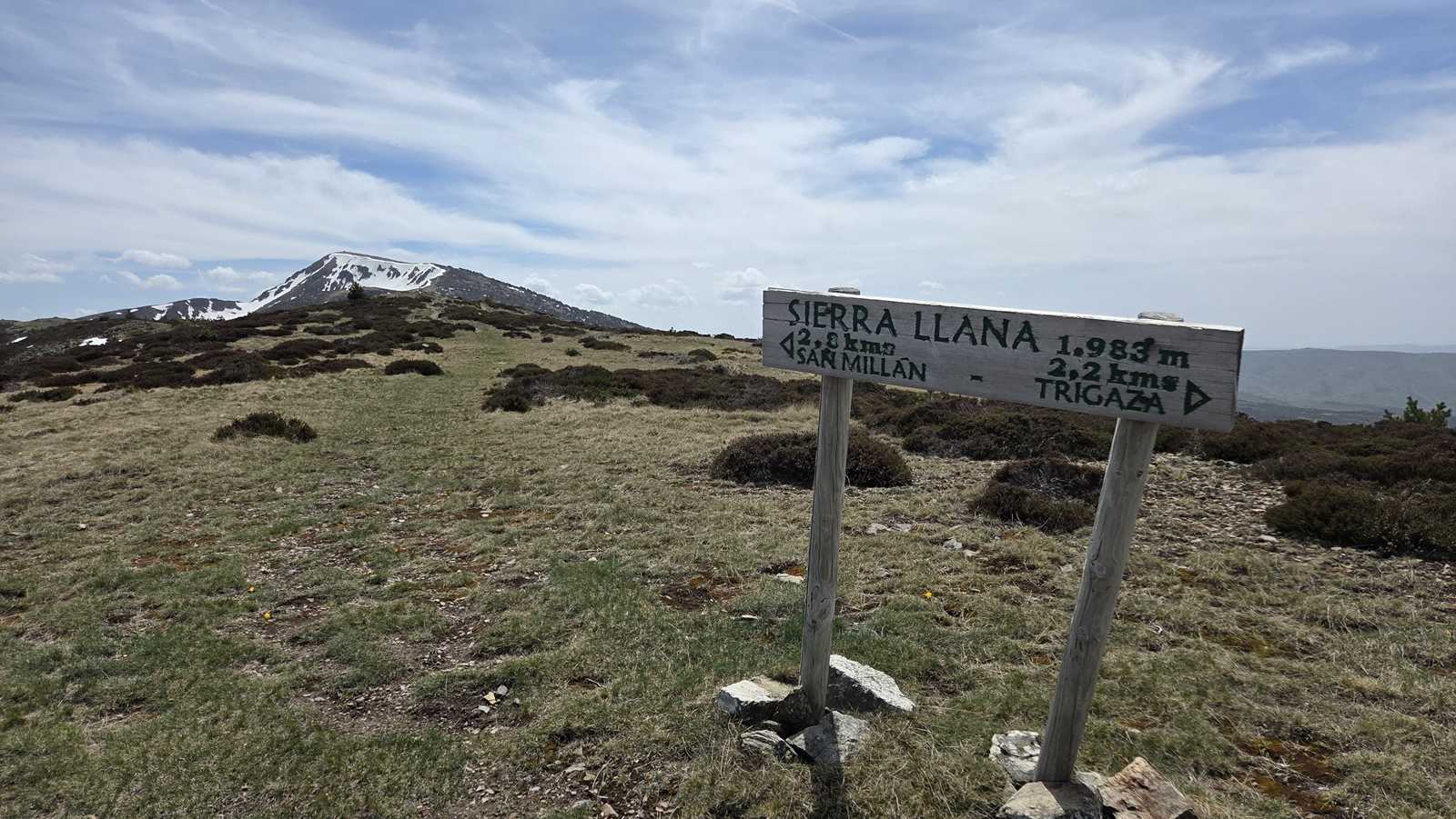 Tras una ascensión dura y constante, alcanzamos la línea de cumbre, en torno a los 1.956 metros, llegando al Collado de Sierra Llana, con el Pico Trigaza a nuestra derecha.